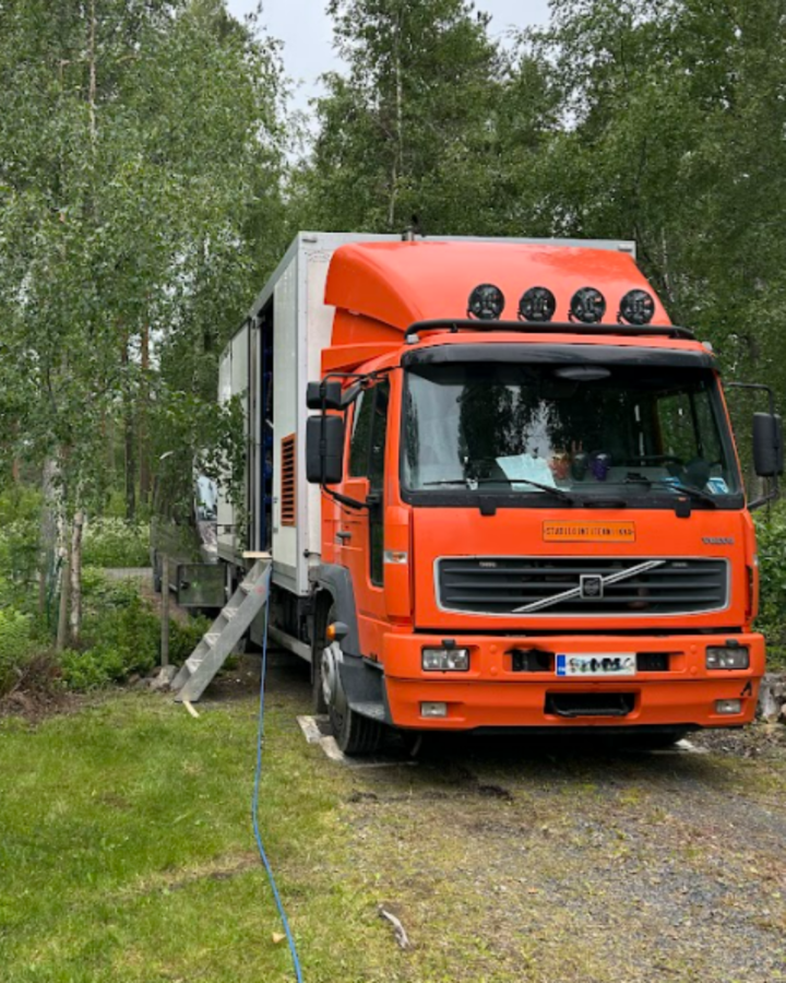 Tunnusväreissä oleva Volvomme saapui tähän mökkikohteeseen Vanajavesistön äärelle sovittuna päivänä, ja pitkän työpäivän jälkeen tämäkin painunut mökki saatiin luovutettua asiakkaalle tyytyväisin mielin. Mökin nosto päättyi +13 cm nostoon ja kokonaisuudessaan mökki oikaistiin 15 mm toleranssiin! Löyhtynyt maaperä vahvistettiin estämään haitalliset painaumat, ja pihapiiri siistittiin kaivuutöiden jäljiltä.